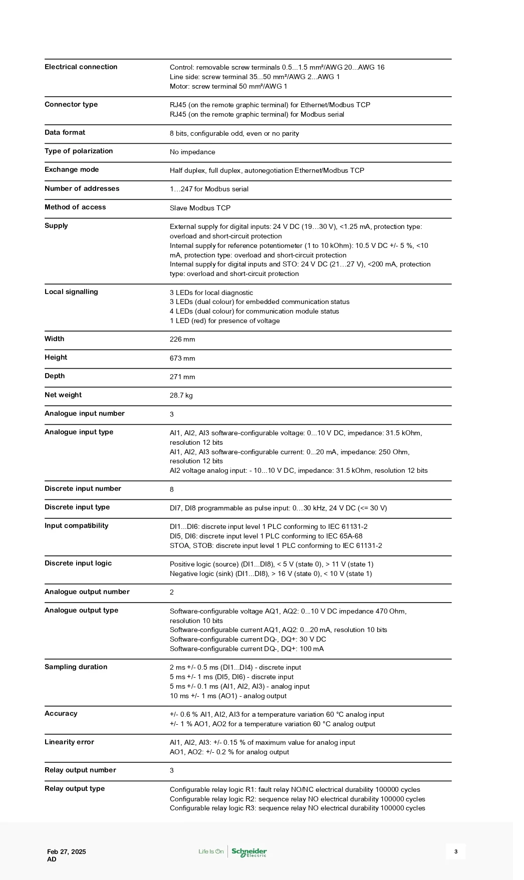 Variable speed drive, Altivar Process ATV600, ATV630, 18.5kW, 25hp, 380 to 480V, IP21, UL type 1
